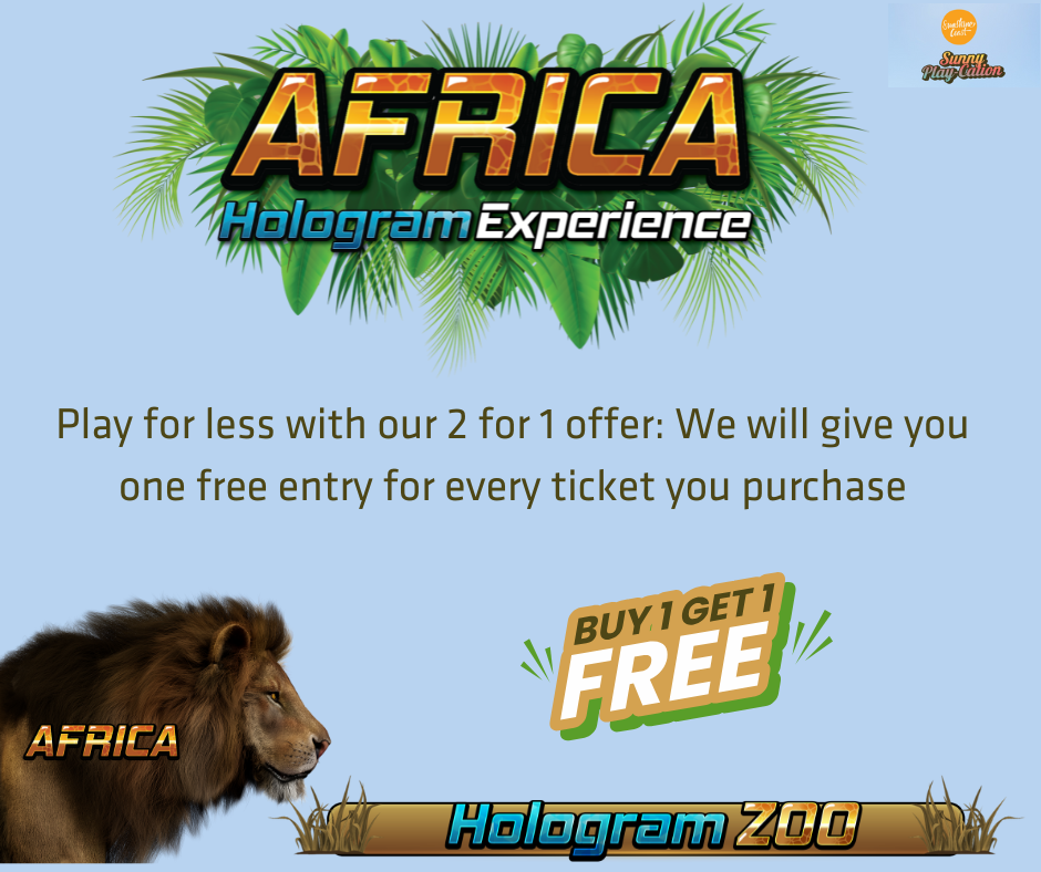You can take a swim down the african river, where elephants spray you with water... Make sure you watch out for angry Hippos! See amazing creatures like gorillas and lions up close like never seen before! The animals look and act alive, but they are holograms made of lasers and you can put your hand straight through them.